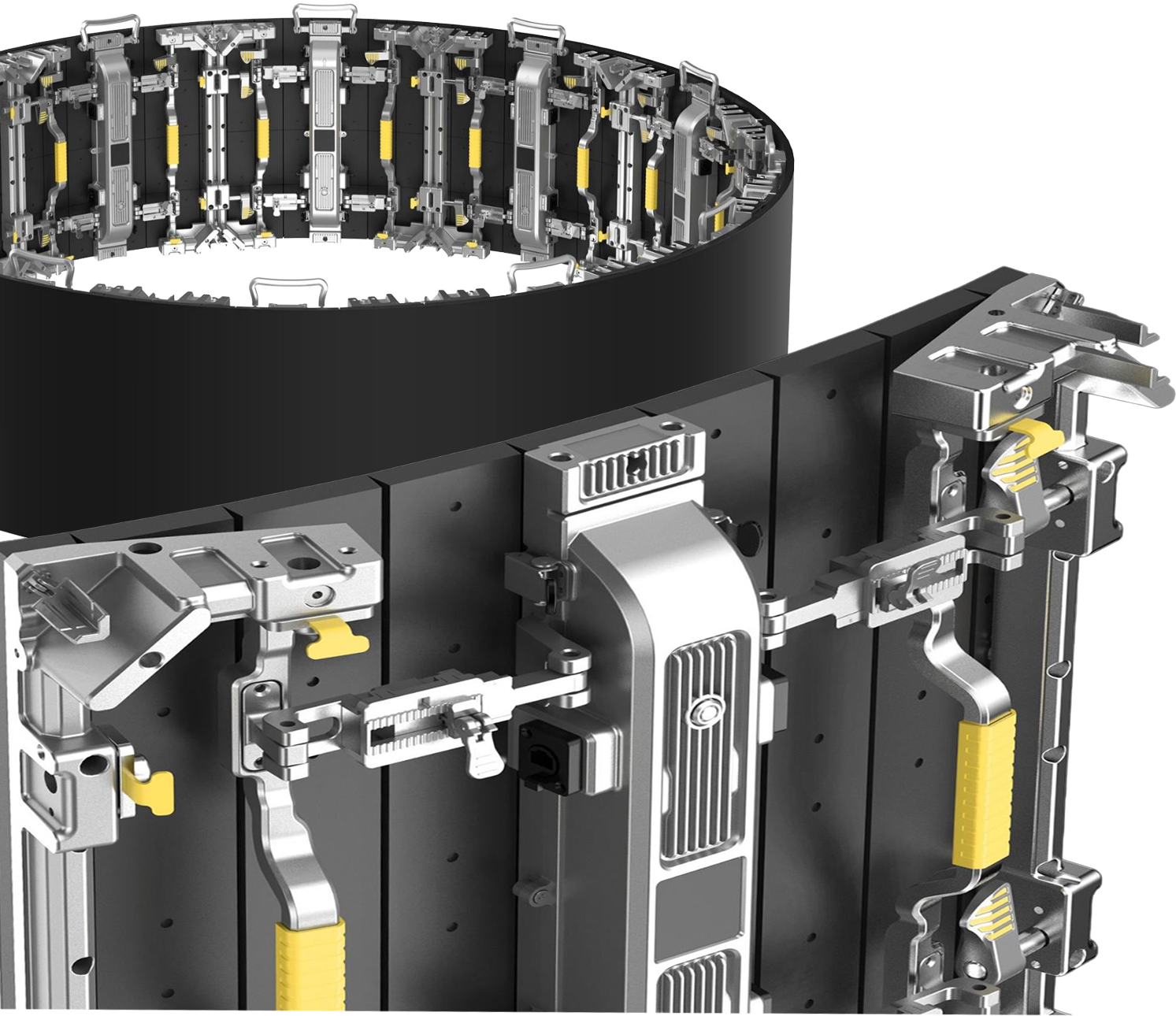 Das nur 2,45 kg leichte Modul aus Vollaluminium ermöglicht Wartung front- und rückseitig ohne Schrauben oder Scharniere. Bis 4.500 nit hell